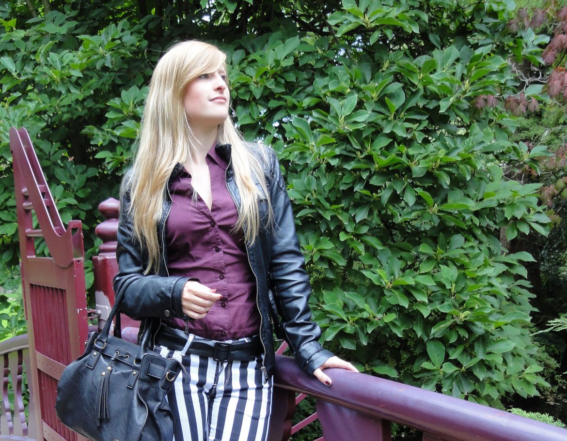 My favorite outfit for today is a definitely eye-catching black and white striped pair of trousers. Besides this eye-catching effect, vertical streaks are also having a lengthening effect on the legs – which girl cannot need this effect? 😉 If you have one garment which attracts attention as much as this trouser does, you have to be careful how to combine it.