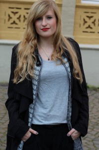 2 Basic Shirt grau schwarzer Trenchcoat Look