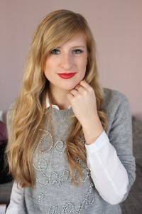 Catrice Weihnachts-Make-Up Look lange Haare blond rote Lippen Lippenstift Beauty Post Blog