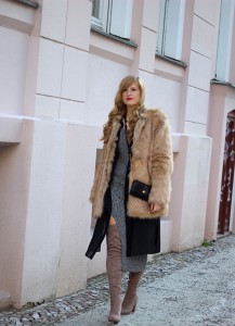 OOTD Fashion Week Berlin Outfit langes Wollkleid Asos Overknees  Kunstfelljacke Zara streetstyle Blog 9
