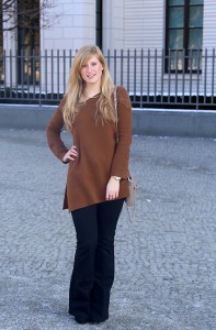 Fashion Look Outfit OOTD Flared Jeans Schlaghose kombinieren Zara Off-Shoulder Pullover und Rebecca Minkoff Umhängetasche Modeblog Trend Frühling