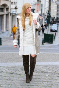 Grüne Overknees Zara Ledermantel Overknee Stiefel Nude Wollkleid Fashion Look Modeblog 1