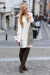 Grüne Overknees Zara Ledermantel Overknee Stiefel Nude Wollkleid Fashion Look Modeblog 8
