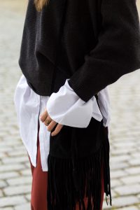 Weinrote Culotte kombinieren OOTD Outfit Fransentasche Frühlingslook 2