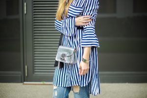 Outfit OOTD blau weiß gestreifte Bluse Edited Furla Metropolis silber 2