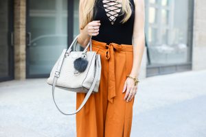 Schwarzer Schnürbody H&M orange Culotte Asos mit Schlangenleder Optik Michael kors Handtasche auf meinem Modeblog Streetstyle Berlin Sommertrend 2016