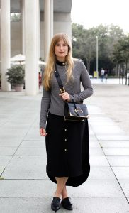 Herbst Trend Tasche Prada Cahier Bag schwarzes Maxikleid kombinieren Slip-in-loafer H&M Modeblog Herbstoutfit 8