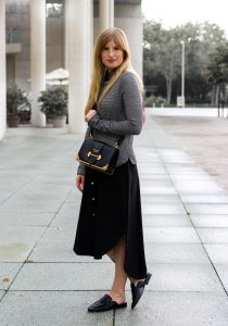 Herbst Trend Tasche Prada Cahier Bag schwarzes Maxikleid kombinieren Zara Pullover Modeblog Herbstoutfit 1