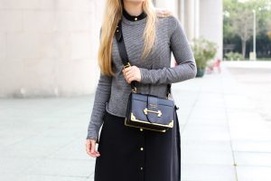 Herbst Trend Tasche Prada Cahier Bag schwarzes Maxikleid kombinieren Zara Pullover Modeblog Herbstoutfit 8