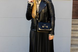 schwarze Lederjacke Falten Lederrock Prada Cahier Bag Modeblog Köln Herbstlook 3