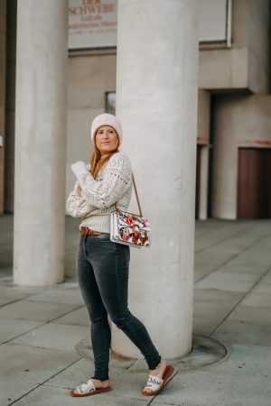 Übergangslook 2022 Frühlingslook Outfit Acne Studios Mütze Chloe Sandalen de Bijenkorf Modeblog Bonn 8